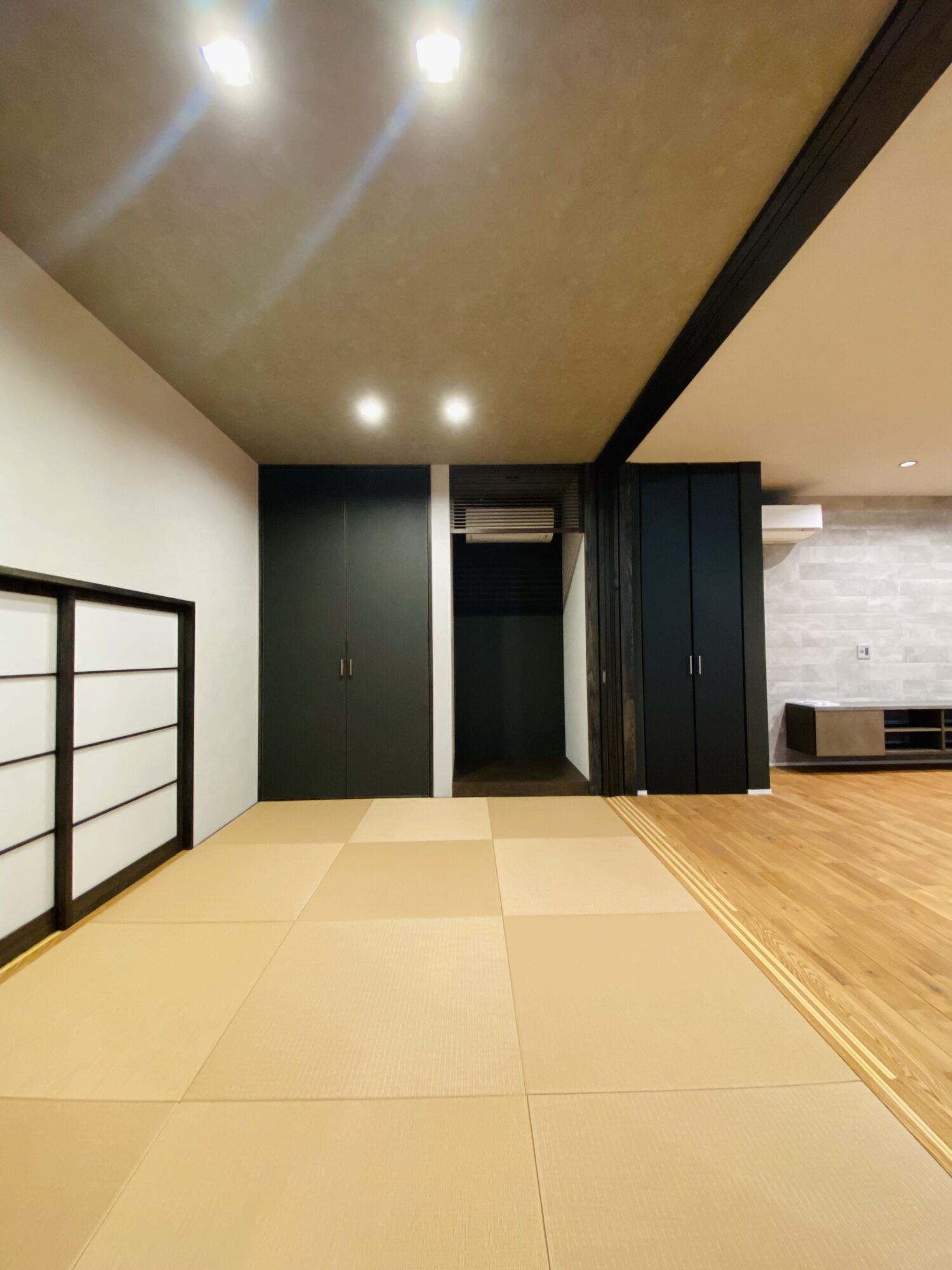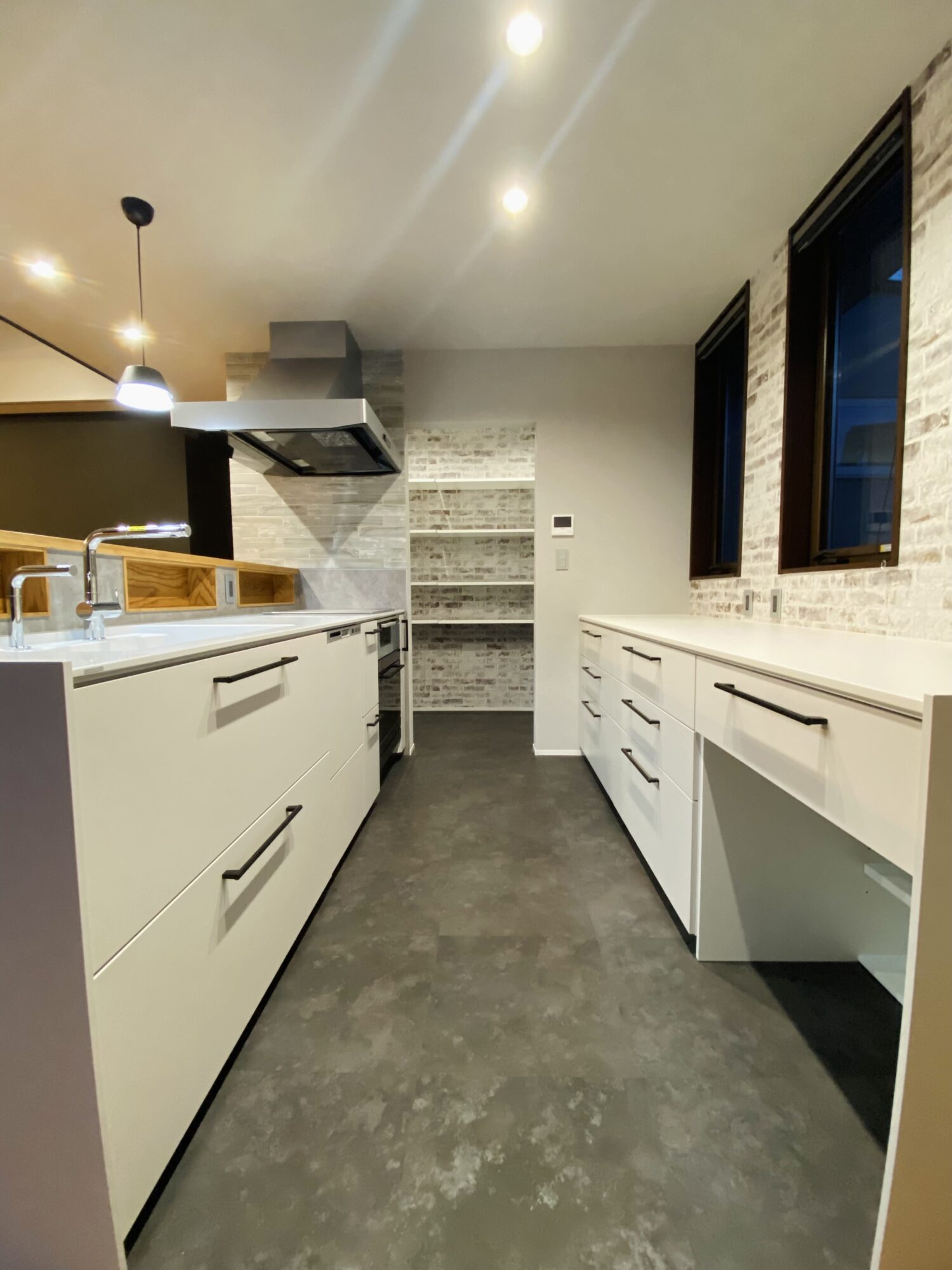 大分市田中町にて2世帯新築工事を施工中です。 お引渡しまであと少し。 現在、外構工事とウッドデッキ工事、内装の仕上げを 行っております。 洗面化粧台はクリナップ 三面鏡はミラタップ を採用しました。 木目とブラックの引手、床のフロアタイルとの相性バッチリです。 こちらはTOTOの化粧台+制作カウンターを採用。 収納棚に天井付け物干し金物も取り付けており、 機能性も良く設計しております。 キッチン・カップボードはTOTOです。 1階のキッチン・カップボードはTOTOを選択。 壁の石目と床の石目が際立つ、落ち着いた雰囲気です。 2階キッチンは次回ご紹介致します。 カップボードの横には更に収納スペースを配置。 小型冷凍庫やストック収納、下部のオープンスペースには ルンバの待機場所となっております。 寝室の並びに収納部屋を配置。 たくさんの収納が可能となっております。 これからカーテンの取付、 […]